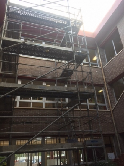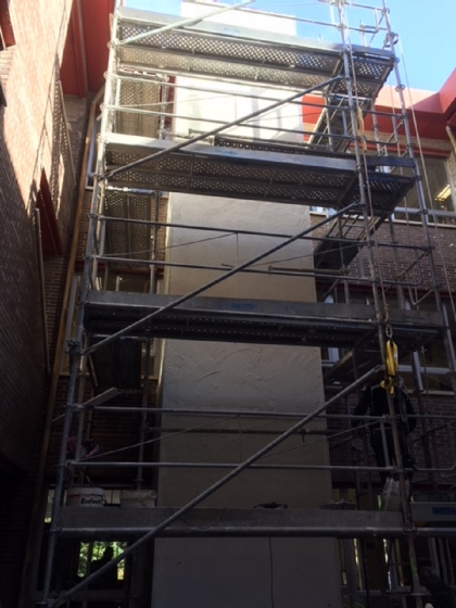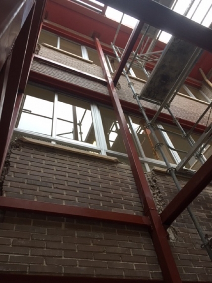 - Ejecución de todos los trabajos de carpintería metálica. Desmontaje de la carpintería de aluminio existente para la formación de hueco de desembarque en las distintas plantas, así como la ejecución de la estructura metálica para la formación de hueco del ascensor.
