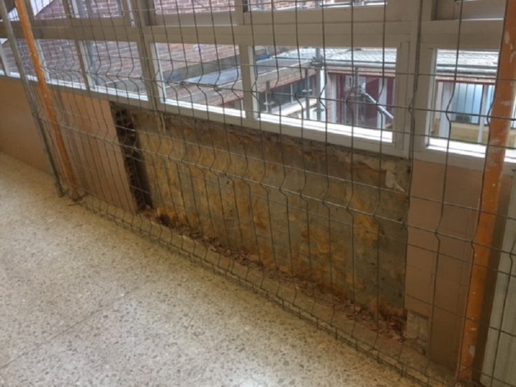 - Ejecución de todos los trabajos de demolición consistente en la demolición del pavimento de planta baja en patio para realización del foso del ascensor, para posteriormente la demolición de la fachada existente para la formación de los huecos correspondientes en las distintas plantas.